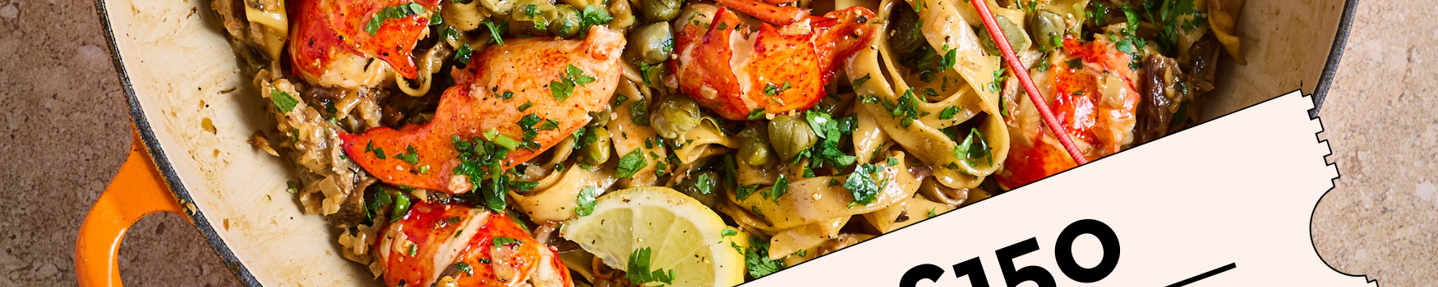 From sweet, succulent prawns to rich Canadian lobster, The Real Seafood Co. specialises in responsibly sourced seafood delivered straight to your door. To celebrate, we’ve created two exclusive recipes showcasing their beautiful ingredients, including a garlicky Spanish-style gambas al ajillo and a luxurious lobster and porcini ‘dirty martini’ tagliatelle.
