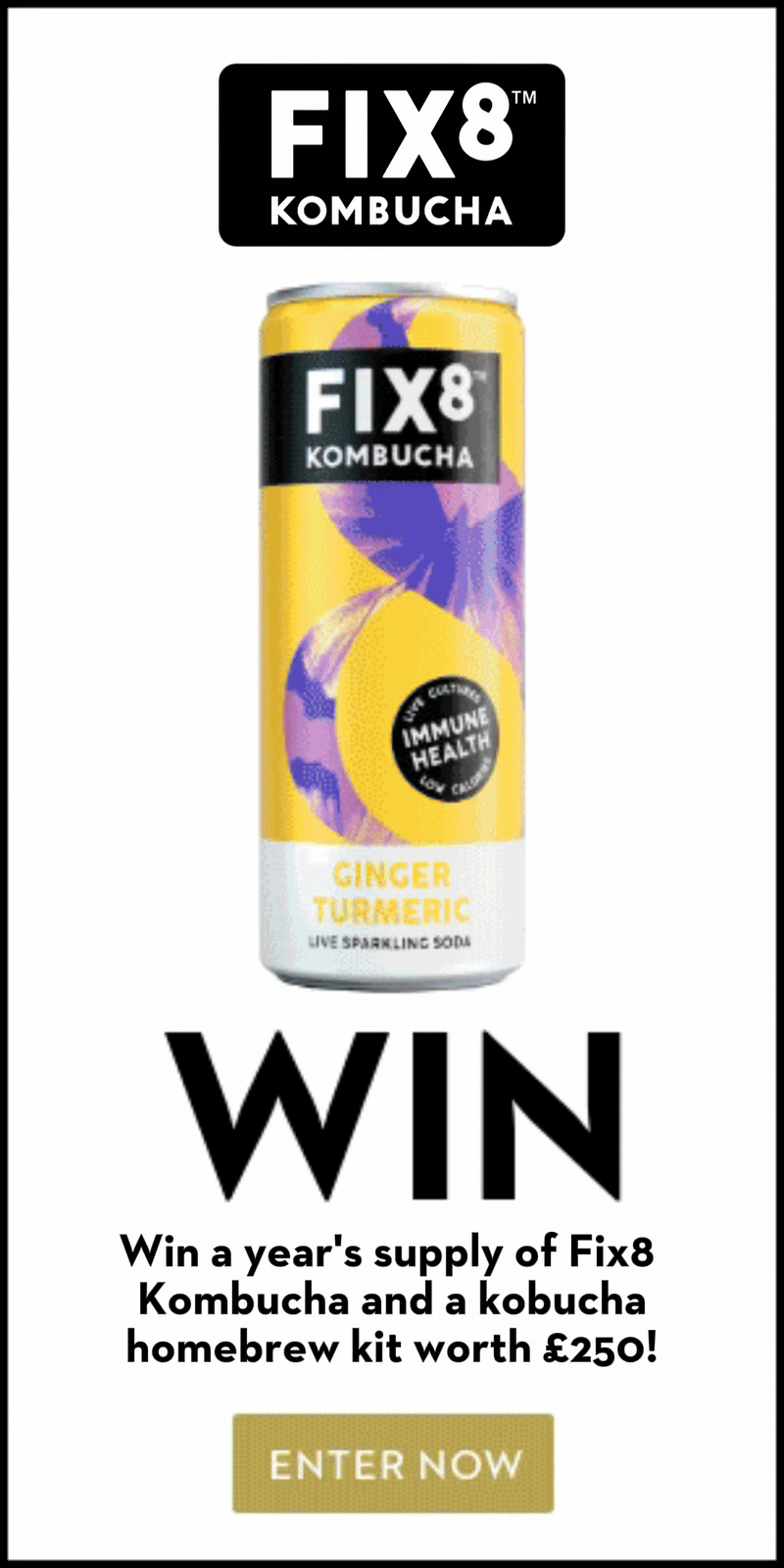 We’re offering you the chance to win a one year’s supply of Fix8 Kombucha, plus your very own kombucha homebrew kit!