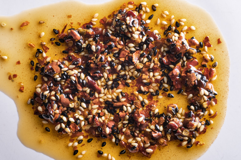 Taste the cooled chilli oil and season with a touch of extra MSG or salt as desired