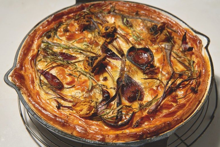 To decorate, scatter over the vegetables, herbs and flowers, if using, and return the pie to the oven for a final 5 minutes for the decorations to crisp up, then serve